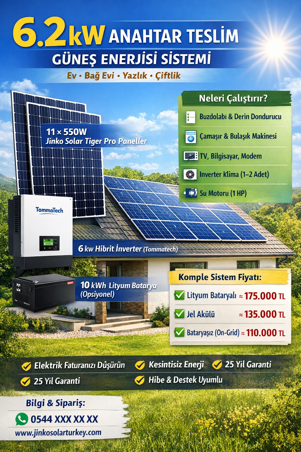 • (Toplam kurulu güç: 6.05 – 6.2 kWp, 25 yıl performans garantisi)