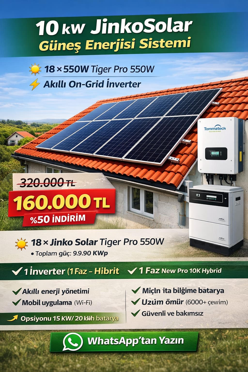 • 1 × Tommatech trifaze on-grid inverter (15–20 kW sınıfı)